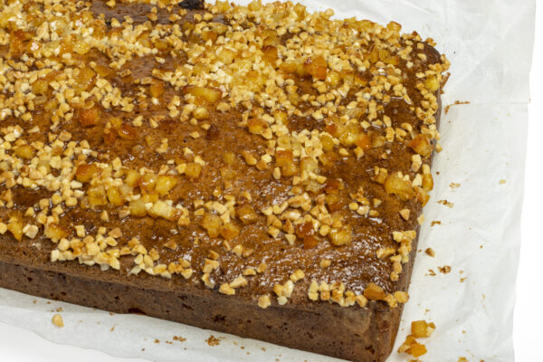 Nuestra Coca de llanda con remates de naranjas confitadas.